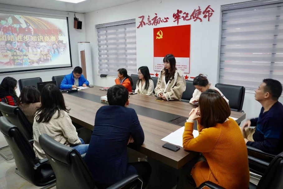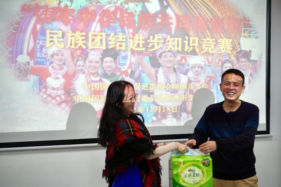 发布日期: 2021-12-07 18:06 被阅览数: 次 来源: 柳州市贸促会  作者: 办公室为全面贯彻落实习近平总书记关于民族工作的重要论述精神,进一步落实中央、全区、全市民族工作会议精神,加强党的民族理论政策、民族法律法规的宣传教育,促进干部职工铸牢中华民族共同体意识,11月下旬,市贸促会组织开展了民族团结进步创建系列活动。